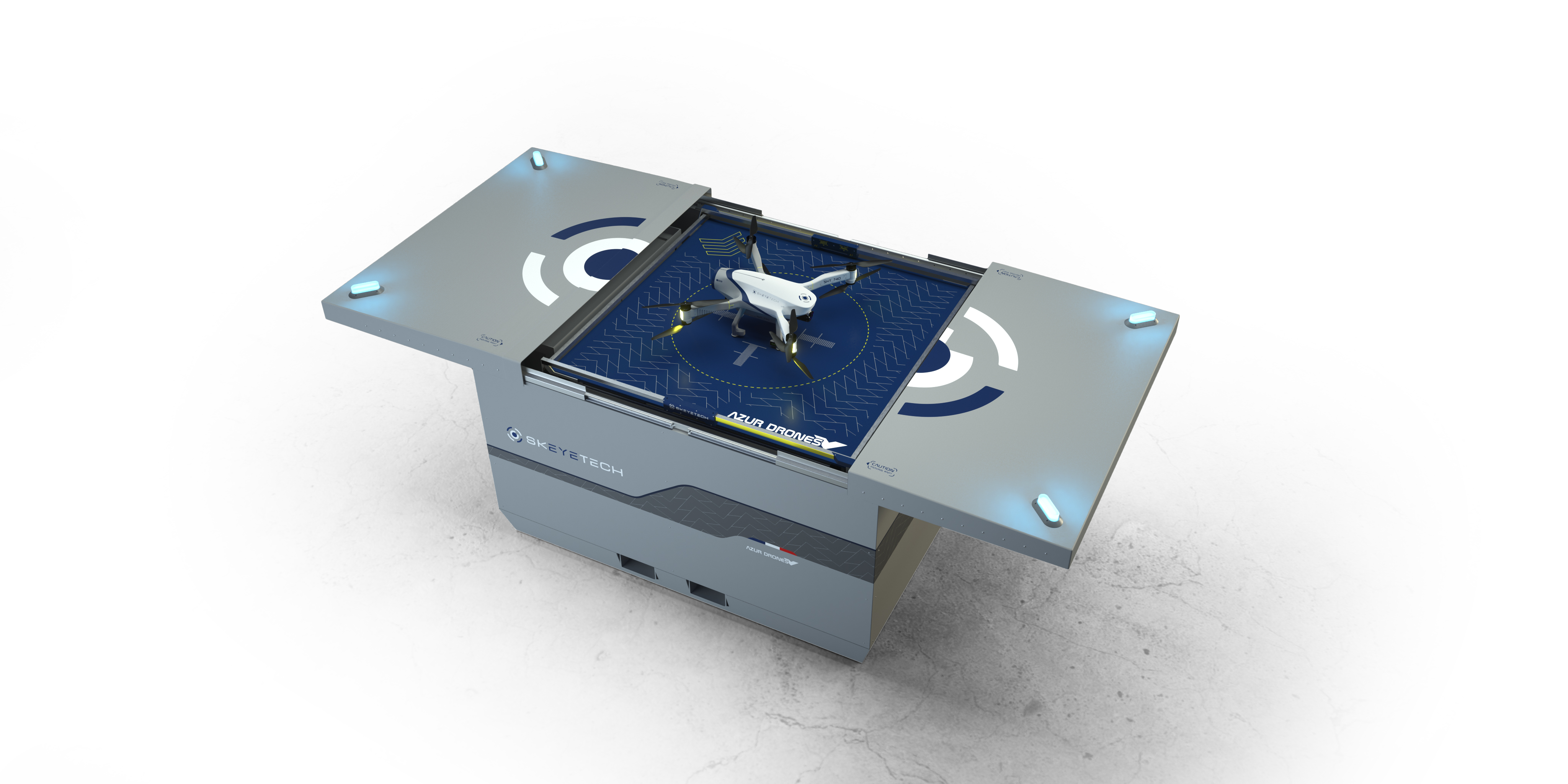 Founded in 2012, Azur Drones is today the European leader in surveillance UAVs. A pioneer in drone-in-a-box systems, the company developed a brand-new autonomous solution that meets safety and security requirements, even in the most sensitive and complex environments. Skeyetech system is the first autonomous drone in Europe approved by the authorities. It can carry out specific checks, reconnaissance flights or assist in crisis situations 24/7.